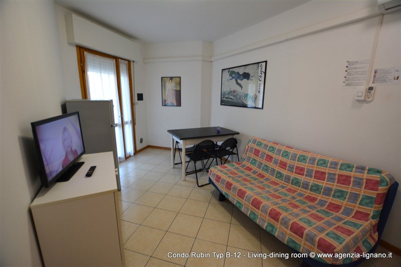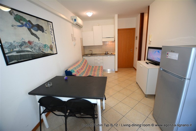 Příjemný apartmánový komplex nedaleko pláže a blízko centra Lignana Riviery, kde najdeme obchody, supermarkety, bary, restaurace, pizzerie. Každá bytová jednotka má v dotaci TV, trezor - použití zdarma, 1 očíslované parkovací místo nebo garáž. V objektu jsou k dispozici výtahy, bazén - lehátka volně k dispozici. Bazén je v provozu OD 1. KVĚTNA DO POLOVINY ZÁŘÍ, WI-FI zdarma u bazenu. V blízkosti leží Riviera Adventure Park o rozloze 20.000 m² zeleně.Typ B-15 KLIMATIZACE; zrekonstruované ubytování ve zvýšeném přízemí. Obývací pokoj - jídelna, rozkládací dvoulůžkový gauč, kuchyňský kout s velkou terasou, ložnice s manželskou postelí, koupelna se sprchovým koutem. Videoclip
