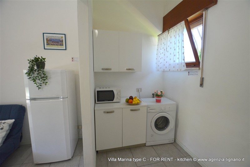 Jolie semi-détaché bungalow idéale pour les familles avec enfants à ca. 300 mt. de la plage et à deux étapes du centre de Lignano Riviera, dans un endroit bien desservi par les supermarchés, boutiques, bars et restaurants. A proximité se trouve le Riviera Parc, 20.000 mètres carrés de vert, snack bar, animation et parcours aventure suspendue entre les arbres. Chaque unité dispose d'un SAFE gratuit, TV SAT, WI-FI GRAUTIT, machine a laver, air conditionné, lave-vaisselle et parking pour 2/3 voitures à l'intérieur du grand jardin clôturé.