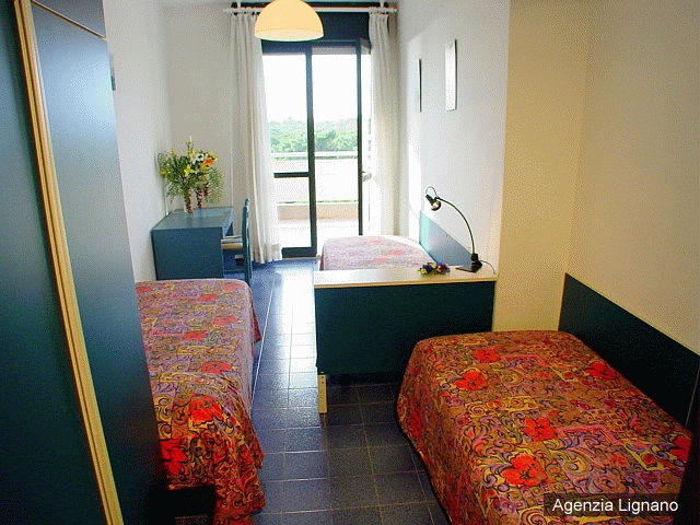 Elégant condo situé directement sur le promenade, dans un quartier calme entouré de verdure et à deux étapes du centre de Lignano Riviera, où vous trouverez une large sélection de magasins tels que la nourriture, snack-bars, pizzerias et restaurants. A proximité se trouve le Riviera Parc, 20.000 mètres carrés de vert. A disposition des hôtes sont une piscine pour adultes et une pour enfants, ouvert de la mi-mai dans la moitié en Septembre, WI-FI gratuit près de le piscine, un grand jardin commune et des ascenseurs. Type C: Dernier étage: salle à manger avec SAT/TV, canapé-lit et terrasse avec table et chaises, kitchenette avec machine a laver, réfrigérateur/congélateur, 1 chambre double, 1 chambre triple, terrasse, 1 salle de bains avec baignoire et douche. Safe gratuit et AIR CONDITIONNE. Chaque unité dispose d'un garage (225x480x180) ou parking. Videoclip