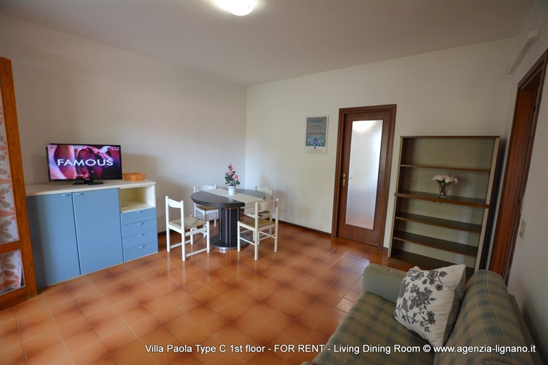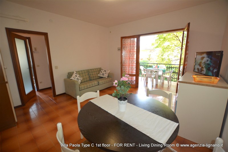 Villa avec 4 appartements dans un quartier très calme, entouré de verdure, idéal pour des vacances de détente loin de la circulation. Situé à ca. 400 mt. de la plage et à distance de marche du centre de Lignano Riviera, où il ya des supermarchés, bars, restaurants, pizzerias et des magasins. A proximité se trouve le Riviera Park -20.000 mètres carrés de vert, snack bar, animation et parcours aventure suspendue entre les arbres . Chaque appartement dispose de la CLIMATISATION, SAT/TV, Wi-fi gratuit, machine à laver, SAFE gratuit et une place de parking attribué dans le jardin.