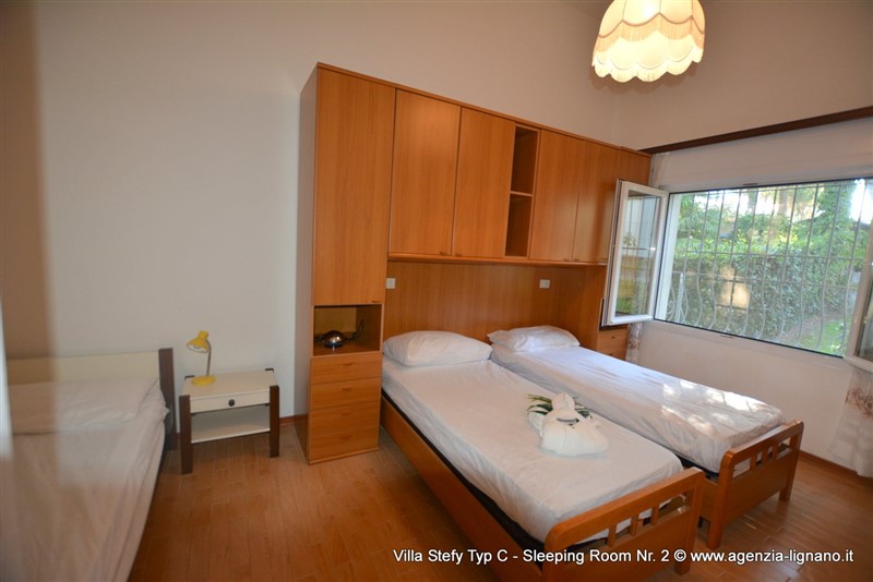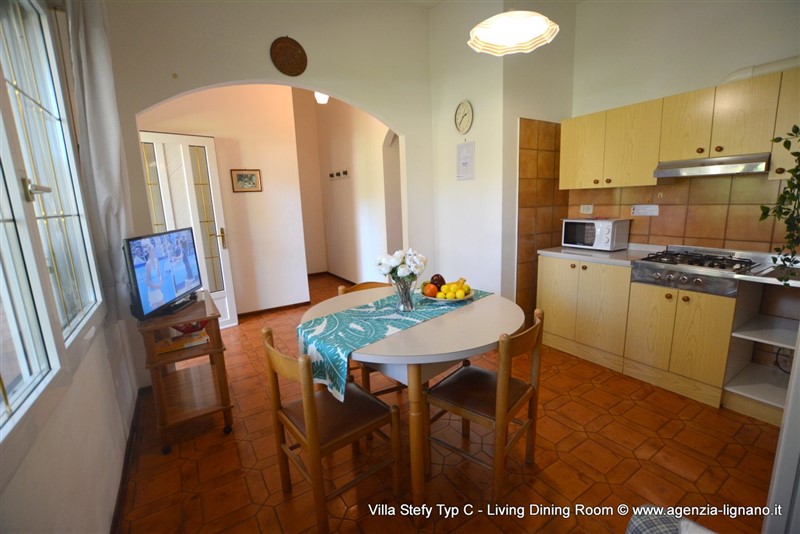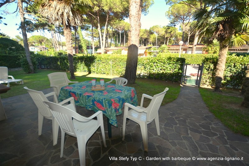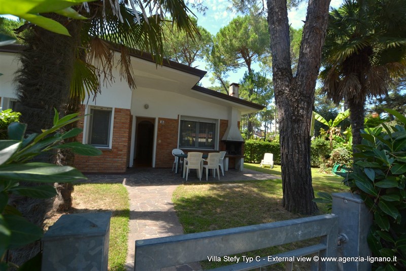 Jolie maison semi-détaché idéale pour des familles avec enfants à ca. 350 mt. de la plage et à deux étapes du centre de Lignano Pineta et de Lignano Riviera, dans un endroit bien desservi par les supermarchés, boutiques, bars et restaurants. A proximité se trouve le Riviera Parc, 20.000 mètres carrés de verdure. Chaque unité dispose de la TV satellite, 1 SAFE gratuite, WI-FI GRATUIT, MICRO-ONDES, MACHINE A LAVER, air conditionné et deux place de parking à l'intérieur du jardin clôturé. Type C: sale a manger avec canapé et coin cuisine, 2 chambre triple, salle de bains avec douche. Patio avec une cheminée, table, chaises et 2 chaise longues. VIDEO Videoclip