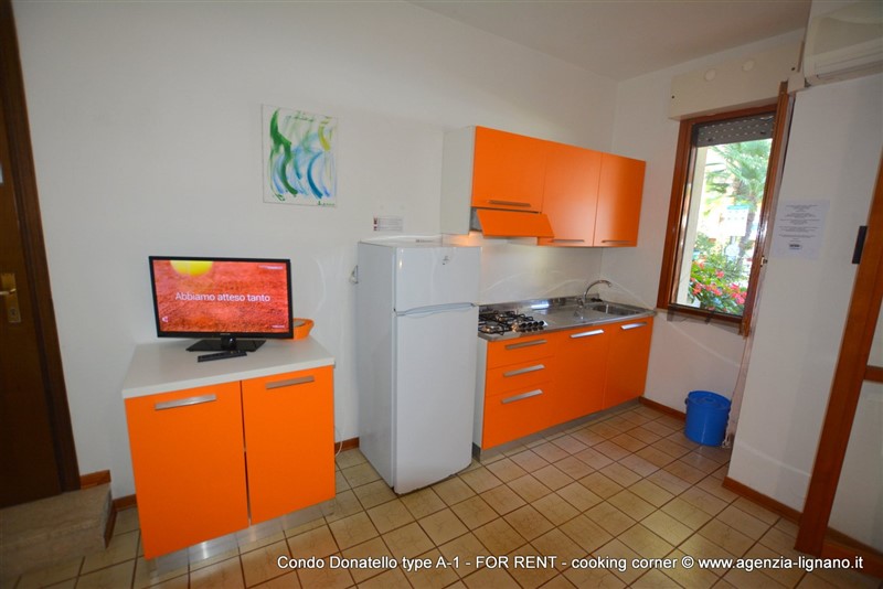Elégant édifice avec piscine communautaire ouvert de la mi-mai dans la moitié en Septembre, situé au 200 mètres ca. de la plage, entouré de verdure et à proximité du centre de Lignano Riviera, où il ya des magasins comme les supermarchés, snack-bars et pizzerias. A proximité se trouve le Riviera Park -20.000 mètres carrés de vert. Grand jardin communautaire et ascenseurs. Chaque unité possède une TV / SAT, WI-FI gratuit près de la piscine, climatisation. Type A-1: Rez-de-chaussée: studio avec 1 lit double + 1 canapé-lit double, terrasse donnant sur la piscine avec table et chaises, kitchenette, salle de bain avec fenêtre et douche/WC, un SAFE et un espace de parking numérotée. Videoclip