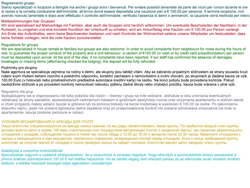 Résidence pas loin de la mer, près du centre de Lignano Riviera, où il ya des supermarchés, snack-bars, restaurants, pizzerias et des magasins. Chaque appartement est équipé de télévision, SAFE et une place de parking numérotée ou dans le garage. Le bâtiment est équipé d'ascenseurs et de piscine meublée avec chaises longues, OUVERT DU 1ER MAI A MI SEPTEMBRE, WI-FI gratuit près de la piscine. A proximité se trouve le Riviera Adventure Parc, 20.000 mètres carrés de vert. Type B-38 CLIMATISATION avec split à la fois dans le salon et dans la chambre; salon-salle à manger avec canapé-lit double, kitchenette et terrasse, 1 chambre double, salle de bains avec douche. Videoclip