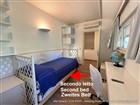 Premier étage : une chambre avec deux lits simples ; une chambre avec un lit simple et un lit gigogne ; une salle de bain vitrée avec douche, lavabo, bidet et WC.